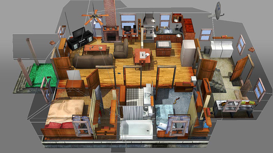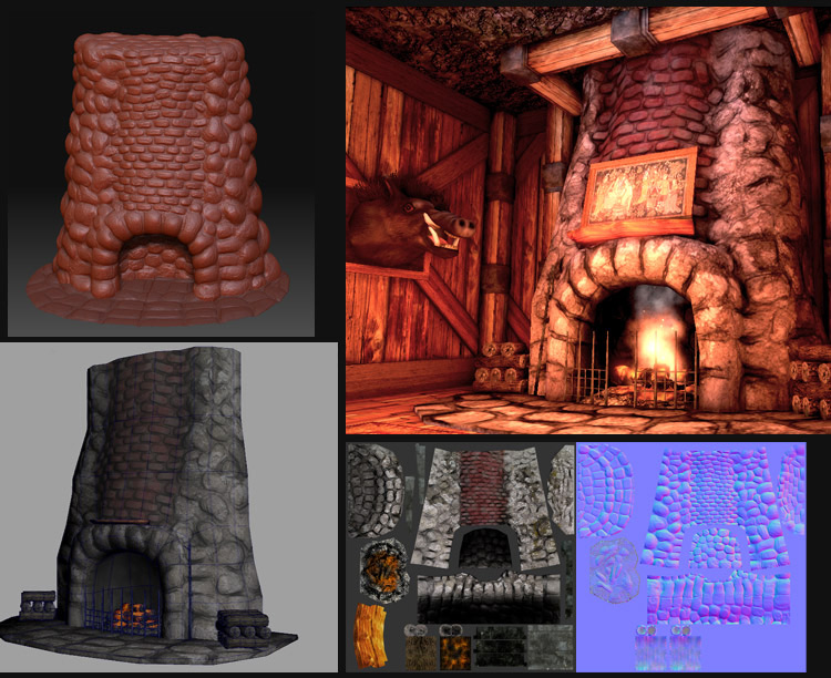 All the props were modeled in Maya and textured in Photoshop and Crazy Bump. The scene and visual effects were created with Photoshop, After Effects, and Unreal.